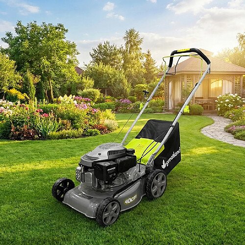 Der Rasenmäher mit Radantrieb und 40 cm Schnittbreite sowie 40-Liter-Grasfangkorb von Greatland sorgt für ein komfortables Mäherlebnis. Leistung und kontrolliertes Mähen
