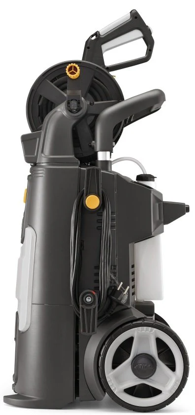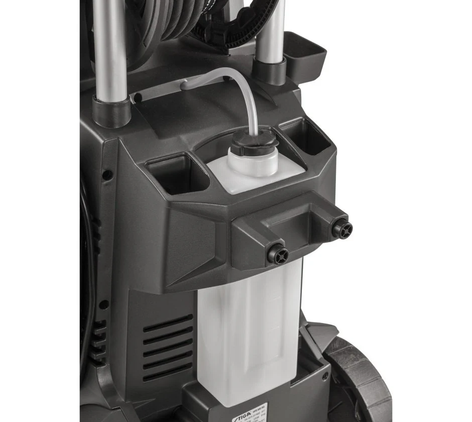 Der HPS 550 R ist ein Kaltwasser-Hochdruckreiniger, der sich perfekt für die Reinigung von Objekten und großen Oberflächen bei maximalem Komfort eignet. Der HPS 550 R wird von einem 2.500 W Elektromotor angetrieben, der mit einem maximalen Druck von 150 bar und einer Durchflussrate von 520 l/Std. arbeitet. Der 10 Meter Hochdruckschlauch besteht aus verstärktem Material und kann mithilfe der Schlauchtrommel mit Aluminiumführungen aufgerollt werden. Das Reinigungsmittel wird automatisch über die Lanze mit verstellbarem Kopf angesaugt, die über den Knopf an der Vorderseite des Hochdruckreinigers geregelt wird. Die großen Gummiräder und der Teleskopgriff erleichtern das Manövrieren bei jeder Reinigung. Die Bedienelemente sind einfach zugänglich und gut sichtbar. Der innovative STIGA Zusatzgriff bietet höchsten Benutzerkomfort. Dieses Modell eignet sich für die Tiefenreinigung von verschiedenen Oberflächen, von Gartengeräten bis zu Höfen, Autos, Kleinbussen und Schwimmbecken.